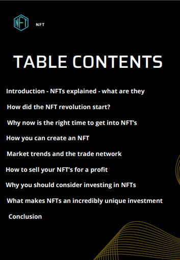 NFT’s, also known as non-fundgible tokens are all the rage right now, and you don’t want to get left behind. This 57-page ebook is a beginner's introduction & instruction to everything NFT’s. You will learn how to make them, sell them, and identify them as a good investment. We're talking about the future, and it's one of few things creating overnight millionaires day after day. Learn about NFT's, it's lifechanging.